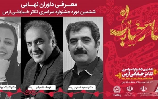 داوران نهایی ششمین جشنواره سراسری تئاتر خیابانی ارس معرفی شدند دبیر ششمین جشنواره سراسری تئاتر خیابانی ارس، داوران بخش نهایی این دوره از جشنواره را معرفی کرد.