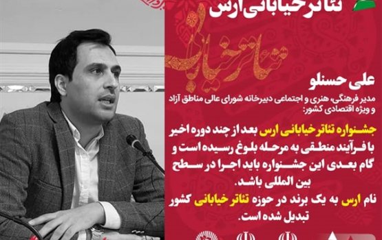 جشنواره تئاتر خیابانی ارس باید به سمت بین المللی شدن گام بردارد مدیر فرهنگی، هنری و اجتماعی دبیرخانه شورایعالی مناطق آزاد و ویژه اقتصادی، گام بعدی جشنواره تئاتر خیابانی ارس را اجرا در گستره بین المللی عنوان کرد.