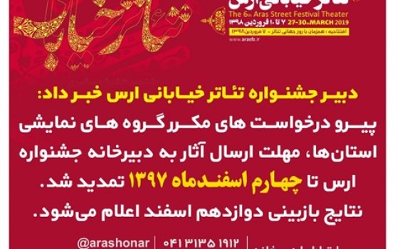 تمدید مهلت ارسال آثار به ششمین جشنواره سراسری تئاتر خیابانی ارس تا 4 اسفند