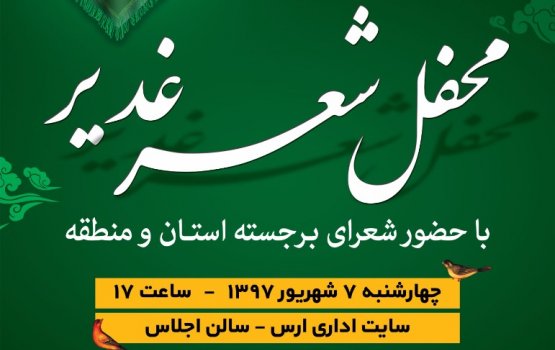 برگزاری محفل شعر غدیر در ارس محفل شعر غدیر به مناسبت گرامیداشت عید غدیر خم در منطقه آزاد ارس برگزار می شود.