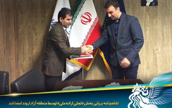 تفاهمنامه برپایی بخش «تجلی اراده ملی» توسط منطقه آزاد اروند امضا شد تفاهمنامه برپایی بخش «تجلی اراده ملی» توسط منطقه آزاد اروند با حضور ابراهیم داروغهزاده دبیر جشنواره و همایون قنواتی مدیر کل فرهنگ و ارشاد اسلامی منطقه آزاد اروند به امضا رسید.