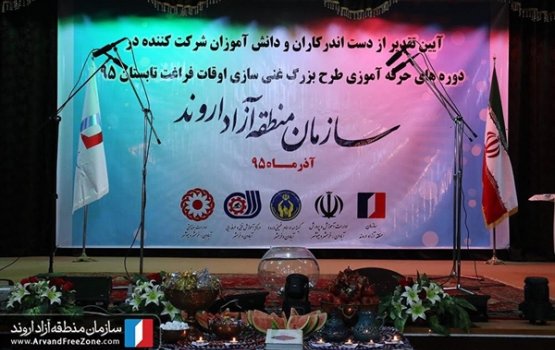 تقدیر از هنرجویان دوره های حرفه آموزی در اروند آیین تجلیل از مسئولان و دانش آموزان شرکتکننده در دورههای حرفهآموزی طرح غنیسازی اوقات فراغت تابستان 95 در تالار مهر آبادان منطقه آزاد اروند برگزار شد.