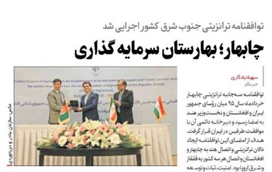 چابهار؛ بهارستان سرمایه گذاری توافقنامه سهجانبه ترانزیتی چابهار خردادماه سال 95 میان رؤسای جمهور ایران و افغانستان و نخستوزیر هند به امضا رسید و دبیرخانه دائمی آن با موافقت طرفین در ایران قرار گرفت. هدف از امضای این توافقنامه ایجاد دالان ترانزیتی و اتصال هند به چابهار و افغانستان و اتصال هر سه کشور به قفقاز و شرق اروپا بود. امنیت، ثبات و توسعه منطقه نیز هدف مهم دیگر موافقت نامه بود.