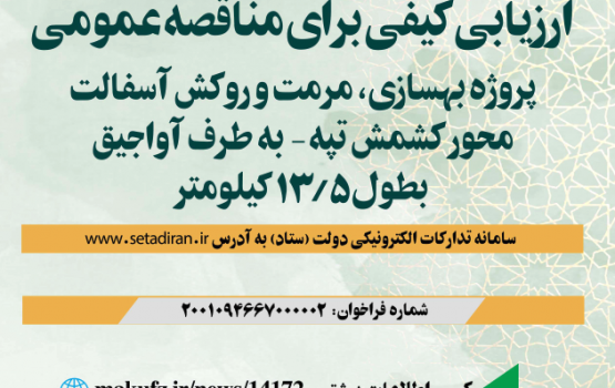 فراخوان ارزیابی کیفی برای مناقصه عمومی منطقه آزاد ماکو فراخوان ارزیابی کیفی برای مناقصه عمومی پروژه بهسازی، مرمت و روکش آسفالت محور کشمش تپه – به طرف آواجیق بطول 13/5 کیلومتر