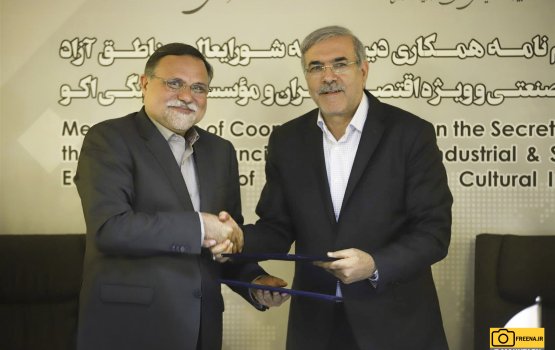 با همکاری اکو؛ اجرای پروژه "مشعل صلح، راه ابریشم، راه صلح" در مناطق آزاد تفاهم نامه ای میان دبیرخانه شورایعالی مناطق آزاد و ویژه اقتصادی و موسسه فرهنگی اکو(ECI) با هدف اجرای پروژه های فرهنگی، ورزشی و هنری در مناطق آزاد ایران و سایر کشورهای عضو اکو و تلاش در راستای برقراری صلح منطقه ای و جهانی امضاء شد.