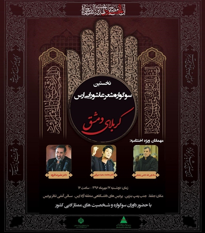 اختتامیه نخستین سوگواره شعر عاشورایی ارس با عنوان کربلای دمشق با حضور استاد کلامی زنجانی، علیرضا قزوه و محمدسعید میرزایی از شعرای بنام کشور در 17 مهرماه و در شهر جلفا برگزار می شود.