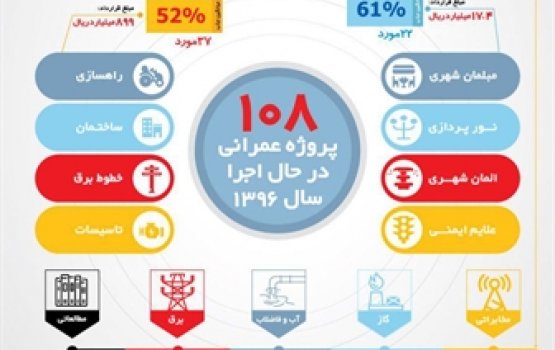 احمدی تاکید کرد: در حوزه پروژههای شهری و روستایی نیز شاهد اجرای 22 پروژه در سال 96 هستیم که این موارد نیز شامل مبلمان شهری، نورپردازی، المان شهری و نصب تابلوها میشود.