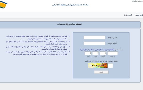 براین اساس دسترسی این سامانه از طریق بخش "سامانه خدمات الکترونیکی مجوزهای شهرسازی" در پرتال خدمات الکترونیک سازمان با آدرس http://eservice.anzalifz.org/ امکان پذیر می باشد و کاربران می توانند با ورود اطلاعات مربوط به شماره پروانه، شماره پرونده و پلاک ثبتی نسبت به استعلام اصالت پروانه ساختمانی خود اقدام نمایند.