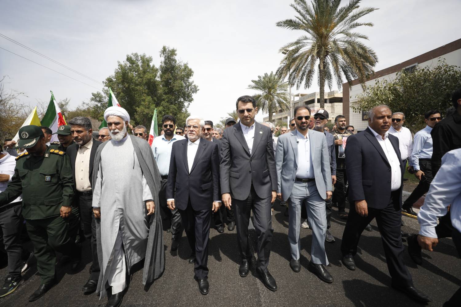 هم پا و همگام با ساکنان و گردشگران، محمدرضا عارف به همراه فرمانده نیروی هوایی ارتش، مدیرعامل سازمان منطقه آزاد کیش و امام جمعه کیش در صف راهپیمایان روز قدس در کیش حضور یافت.