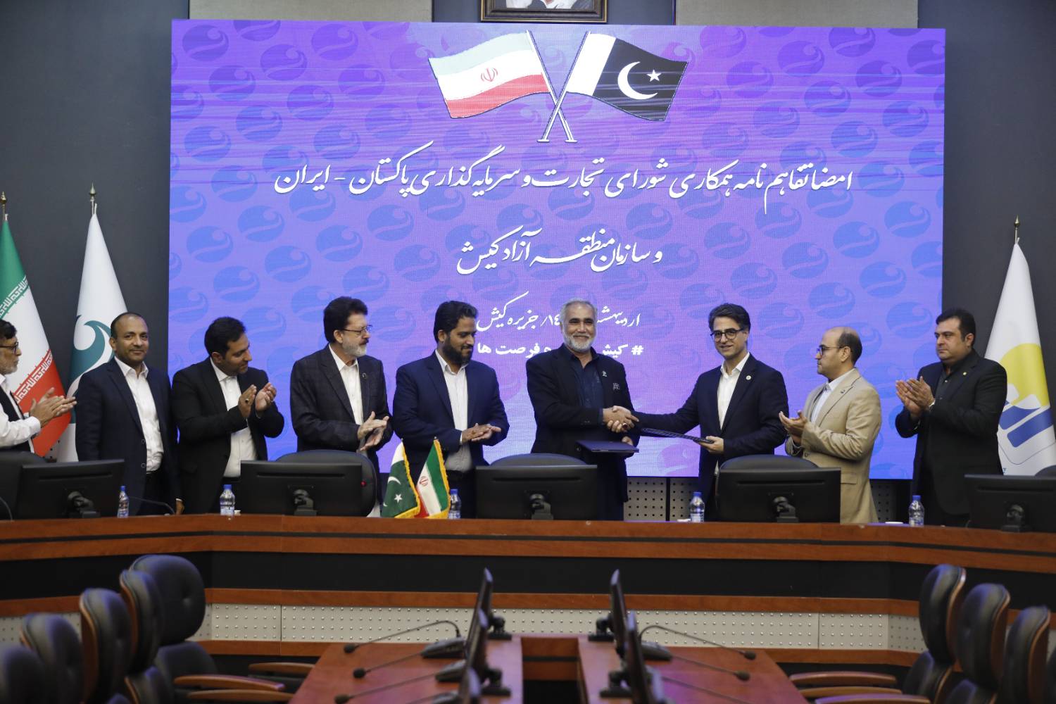 در مراسمی با حضور معاون اقتصادی و سرمایه‌گذاری سازمان منطقه آزاد کیش و رئیس شورای تجارت و سرمایه‌گذاری پاکستان و ایران، تفاهم‌نامه‌ای جامع در پنج محور کلان به امضا رسید که نقطه آغازی بر همکاری‌های راهبردی و چندبعدی میان کیش و پاکستان خواهد بود.