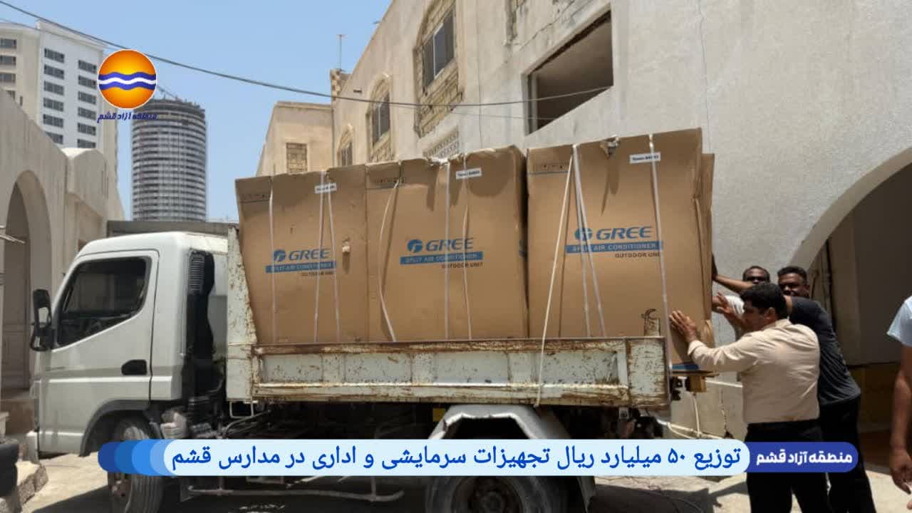 به گفته رئیس اداره آموزش سازمان منطقه آزاد قشم، این تجهیزات به ادارات آموزش و پرورش سراسر جزیره ارسال شده و انتظار می‌رود تمام مدارس و سالن‌های امتحان به سیستم‌های تهویه استاندارد و امکانات اداری مجهز شوند.