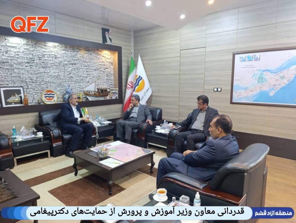 معاون وزیر و رئیس سازمان مدارس و مراکز غیردولتی و توسعه مشارکتهای مردمی وزارت آموزش و پرورش در دیدار با رئیس هیئت مدیره و مدیرعامل سازمان منطقه آزاد قشم، از رویکرد حمایتی این سازمان نسبت به آموزش و پرورش قدردانی کرد.