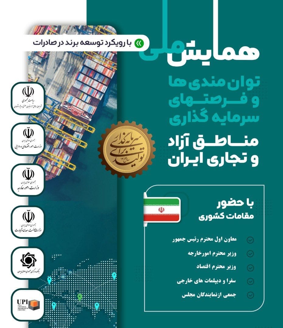 همایش ملی توانمندیها و فرصتهای سرمایهگذاری مناطق آزاد تجاری ـ صنعتی کشور روز 15 شهریورماه 1404 با حضور معاون اول رئیسجمهور در سالن همایشهای صدا و سیما برگزار خواهد شد.