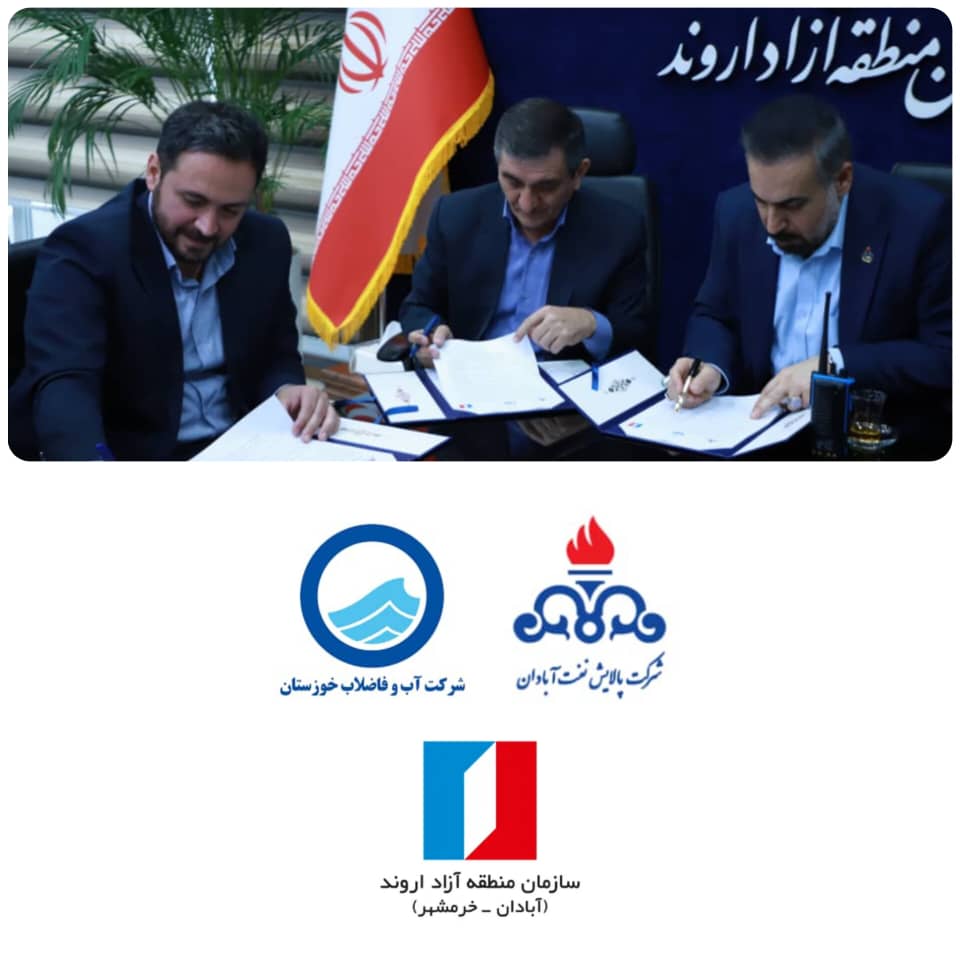 این تفاهمنامه به امضای مصطفی خانزادی، رئیس هیأت مدیره و مدیرعامل سازمان منطقه آزاد اروند، صابر علیدادی، مدیرعامل شرکت آب و فاضلاب خوزستان و فردین راشدی، مدیرعامل پالایشگاه نفت آبادان رسید.