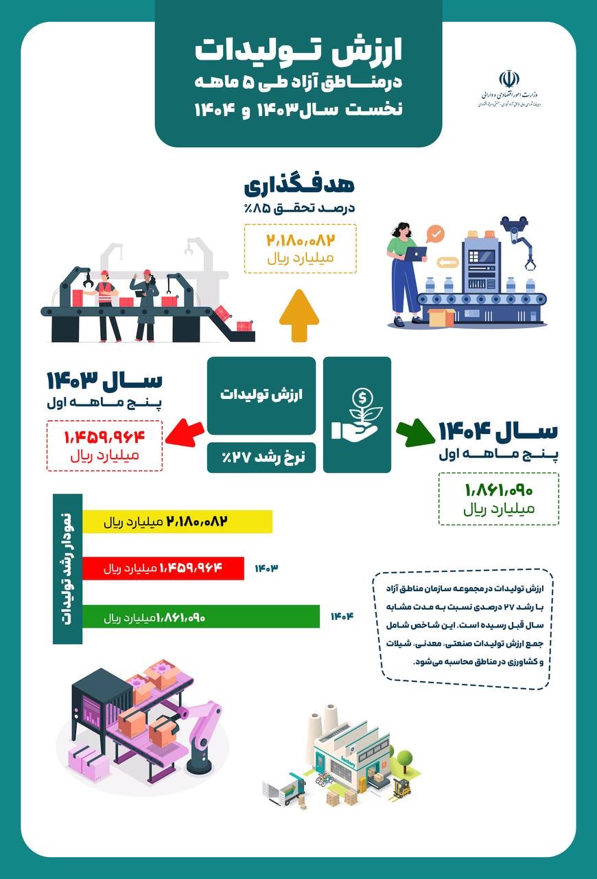 اینفوگرافی | تولیدات در مناطق آزاد طی 5 ماه نخست سال 1403 و 1404
