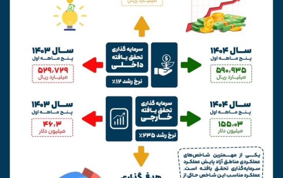 اینفوگرافی | سرمایه‌گذاری تحقق یافته در مناطق آزاد طی 5 ماه نخست سال 1403 و 1404